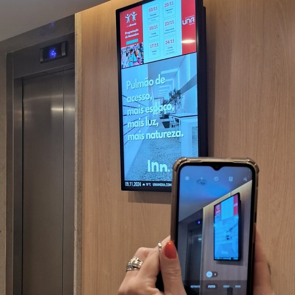Transforme a comunicação do seu condomínio com as telas digitais da Unamidia! Solicite uma avaliação ou peça ao seu síndico para entrar em contato.